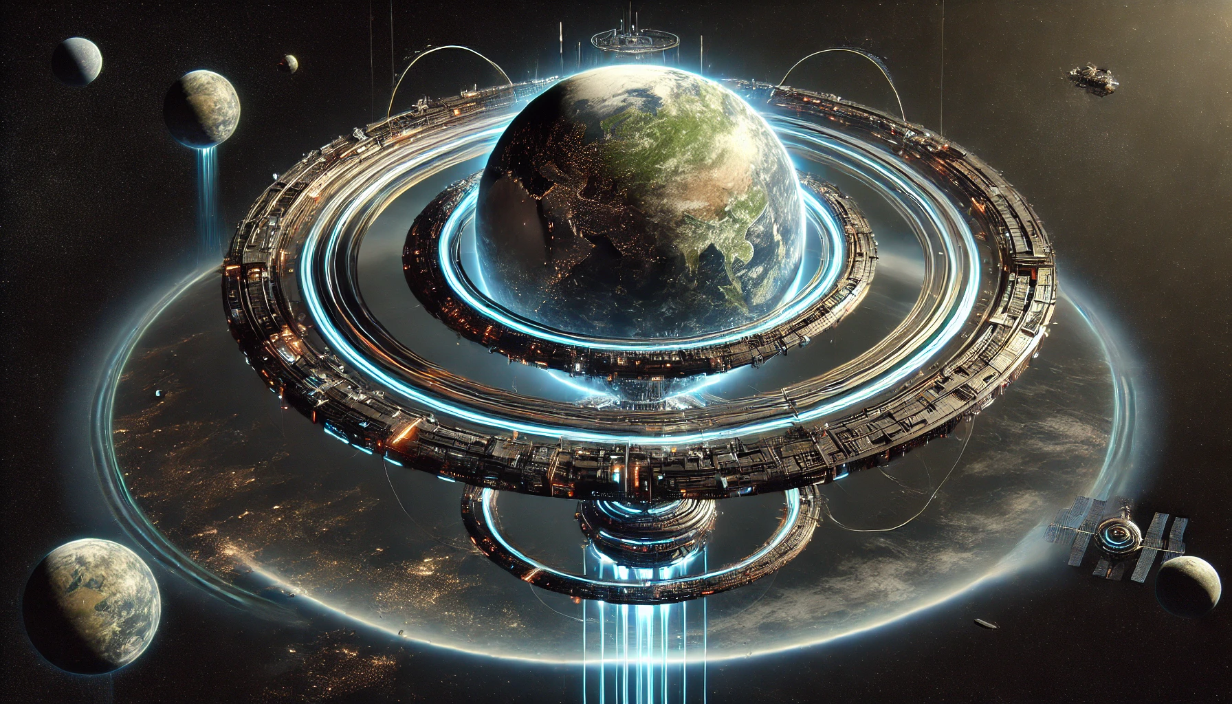 The orbital ring is one of the more credible megastructures in serious astrophysics. Unlike a Dyson sphere or a ringworld, an orbital ring doesn't require tensile materials we don't have or stellar-system reorganization. The rough idea: a circular structure rotating around the planet faster than orbital velocity, holding itself up centrifugally, supporting tethers down to the surface. Paul Birch's 1982 papers worked through the physics. The Tsiolkovsky-derivative space-elevator literature treats them as a more materials-tractable alternative to a single tether. They're hypothetical, but they're not hand-wave.